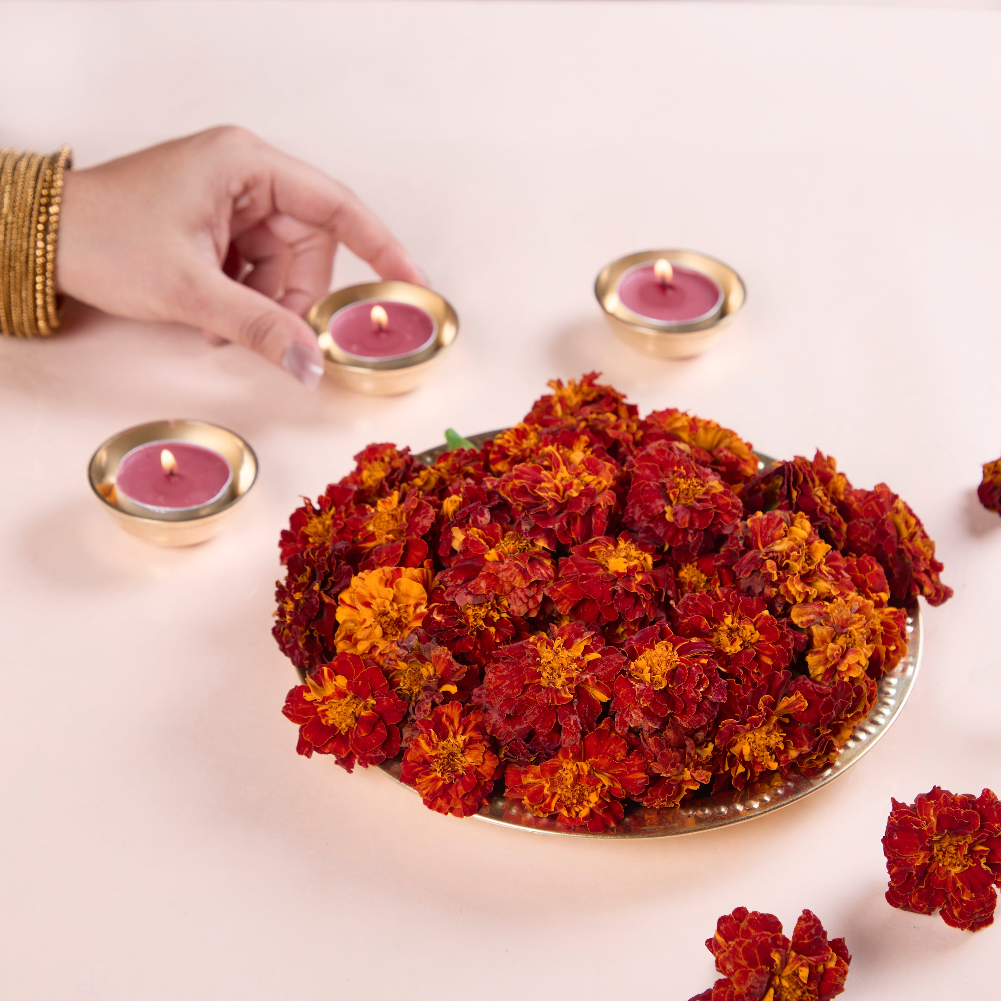Our flowers are handpicked daily to ensure the highest quality and freshness. They are carefully packed to retain their fragrance and purity, making them ideal for your pooja rituals.